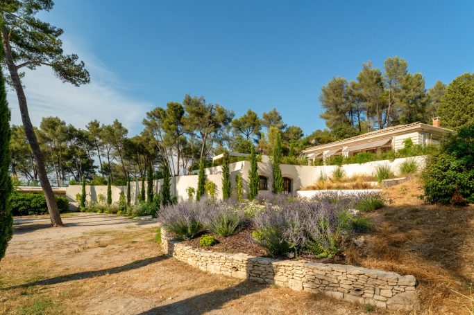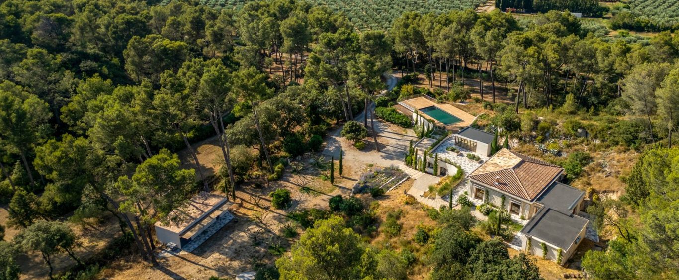 Déployés face à la plaine des Alpilles, les extérieurs de cette maison offrent un équilibre rare entre nature et architecture.